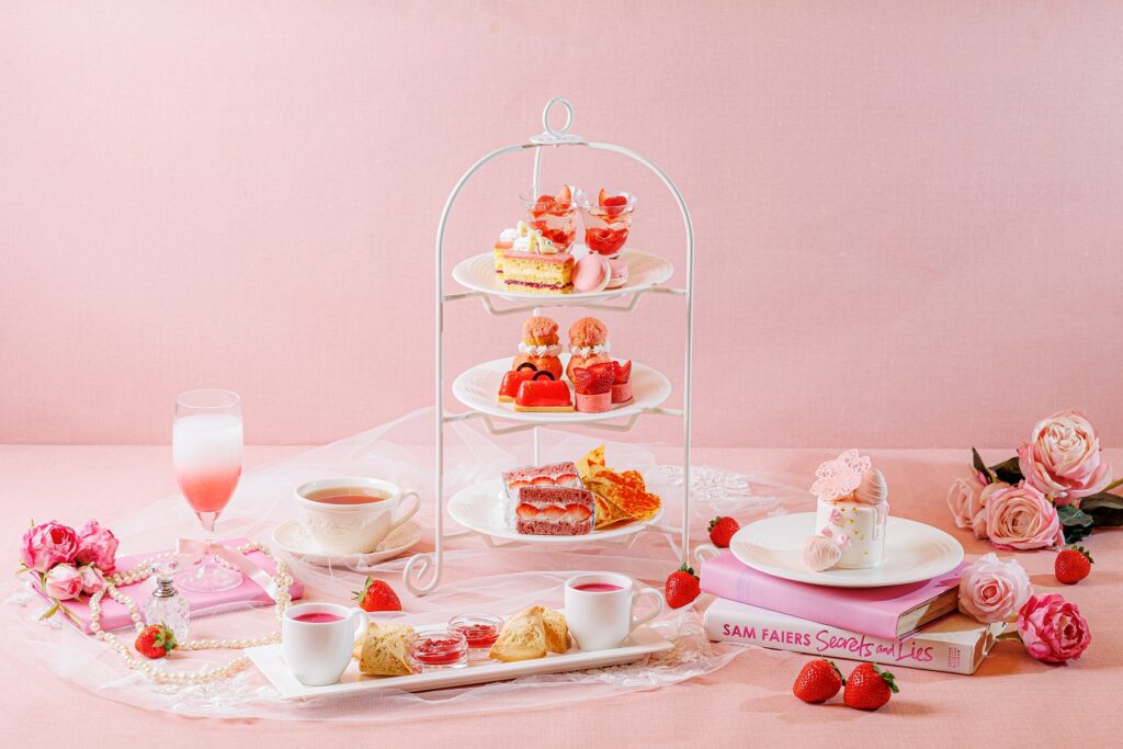 スイーツスタンドには、ハイヒール型のホワイトチョコレートが上品なラズベリーオペラ、いちごと白ワインのジュレ、バイカラーのベリーマカロン、ハンドバッグに見立てたいちごのムースや、ルリルージュなど、レディライクなスイーツが並びます 。普段なかなか入ることの少ない、非日常空間の会場で、推し活、女子会、ご友人や大切なお相手のお誕生日や記念日など様々なシーンでご利用はいかが?
