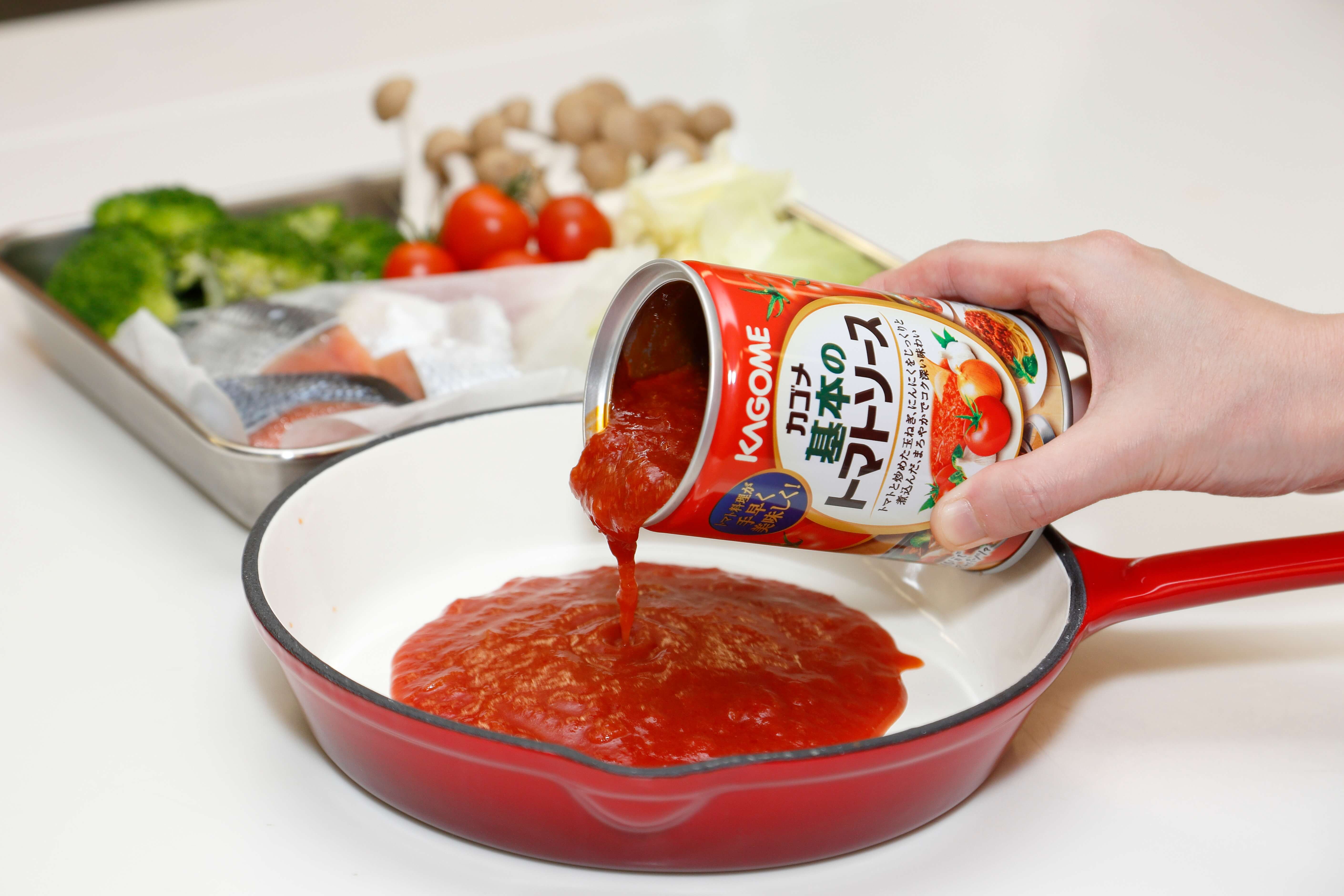 トマトと炒めた玉ねぎ、にんにくをじっくり煮込んだコク深い味わいなので、お好きな具材と合わせるだけで美味しく手早くトマト料理が仕上がります。