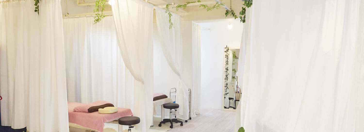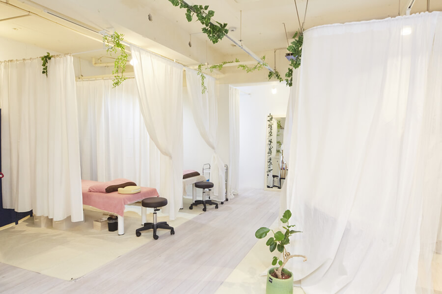 リゾート感のあるカフェのような空間で、鍼灸治療が受けられる「ツボプロ梅田Higashi」。用意されたメニューは体調の回復だけでなく、美顔や痩身など美容効果を目的として通える女性に嬉しい構成だ。