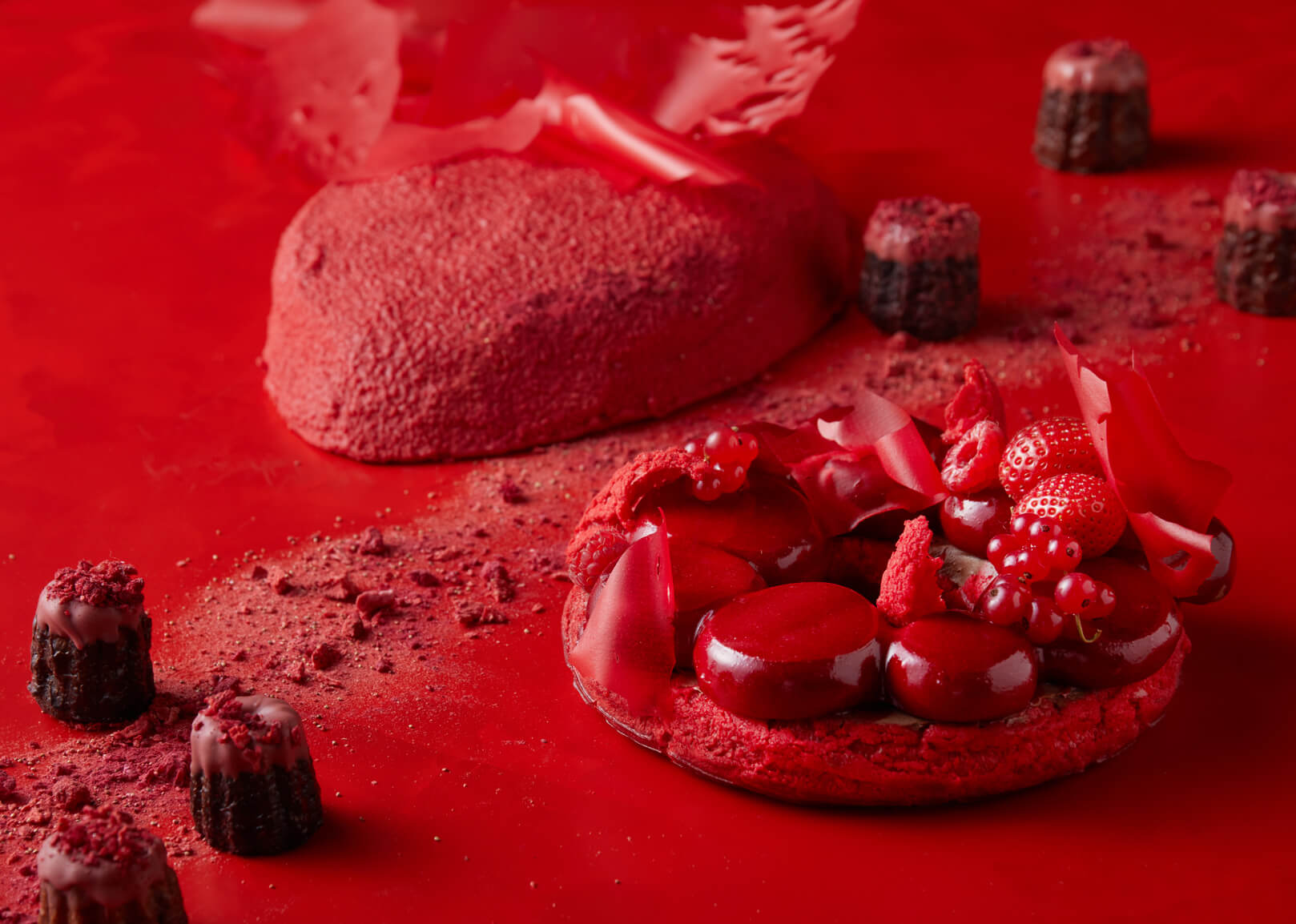 スイーツブッフェアイコン「パリブレスト」とストロベリーチョコレートテリーヌ、ストロベリーカヌレ