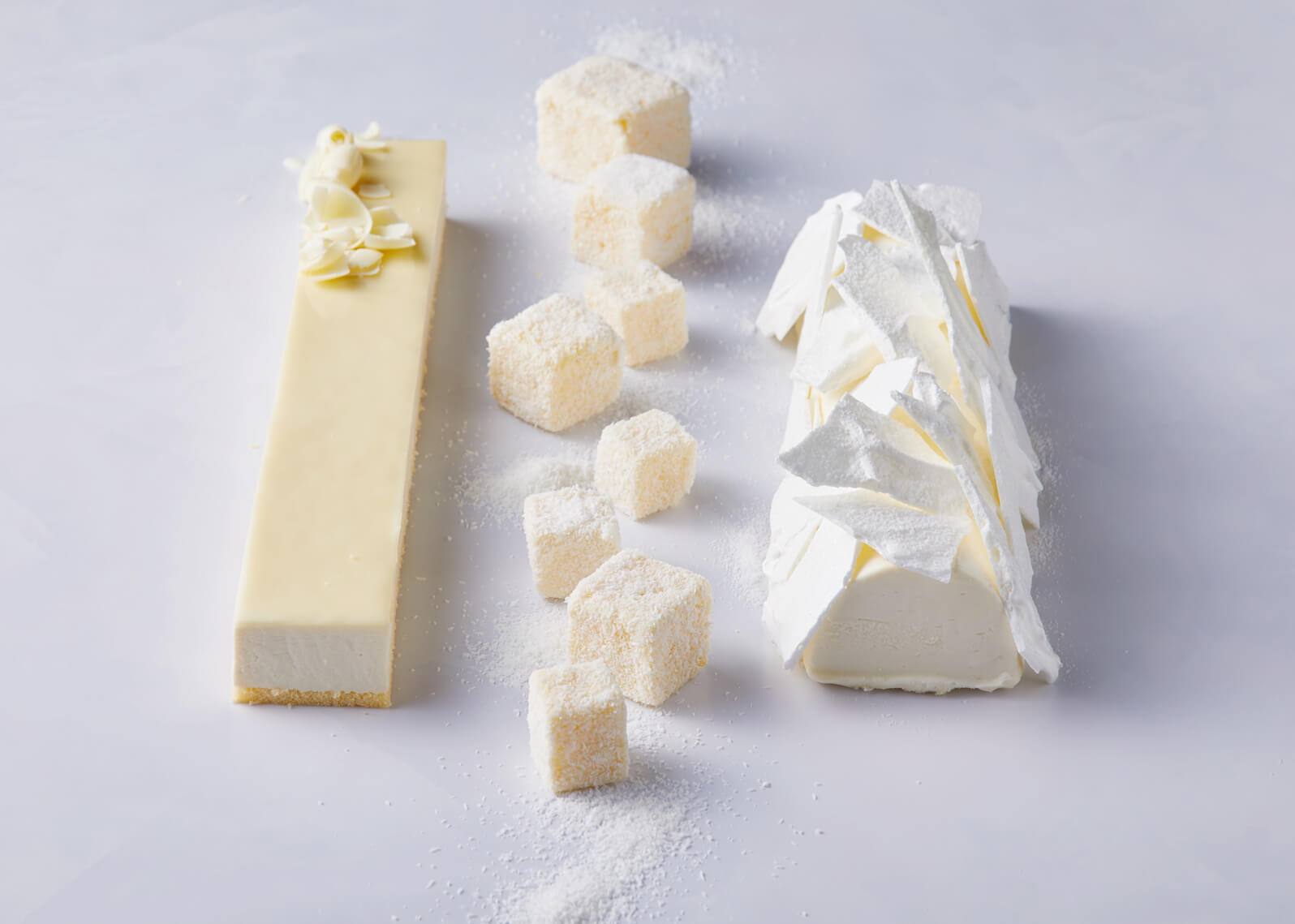 オーストラリアの伝統菓子。ハチミツをたっぷりと使用したスポンジにベリージャムをサンドし、ホワイトチョコレートシロップに潜らせてからココナッツを塗して。