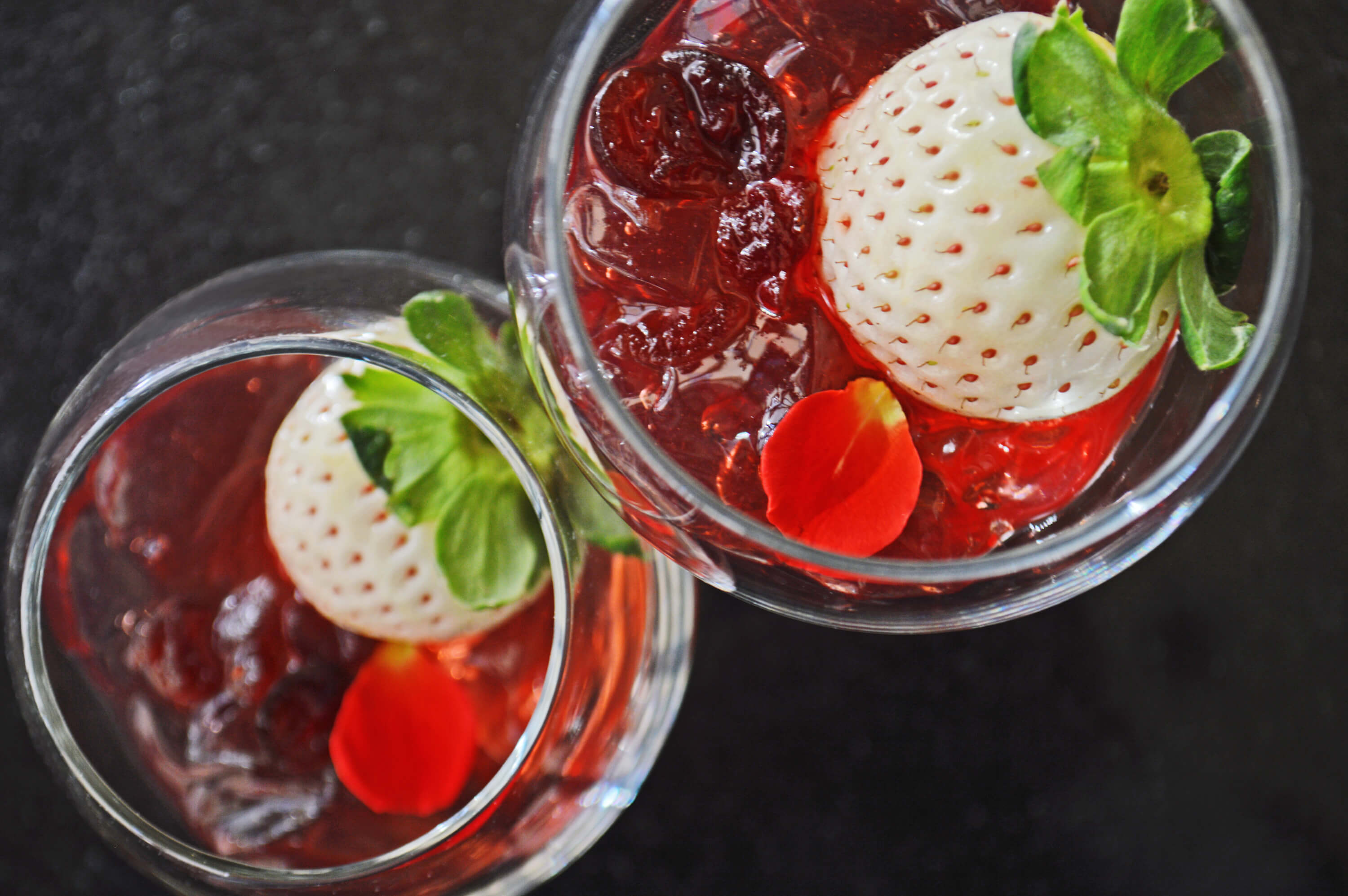 ”スペシャルスイーツ”として、白苺の美味しさをそのままに一粒ずつテーブルにお届けします。”パールホワイト”、”白うさぎ”などから日替わりの品種でグラスに盛り付けます。ドイツの老舗紅茶ロンネフェルトのドライフルーツのみでブレンドされたハーブティーを使用した真っ赤なゼリーと真っ白な苺のコントラストの美しいメニュー。お一人様1セットのみのご提供ですが、苺との味の違いもお楽しみいただけます。