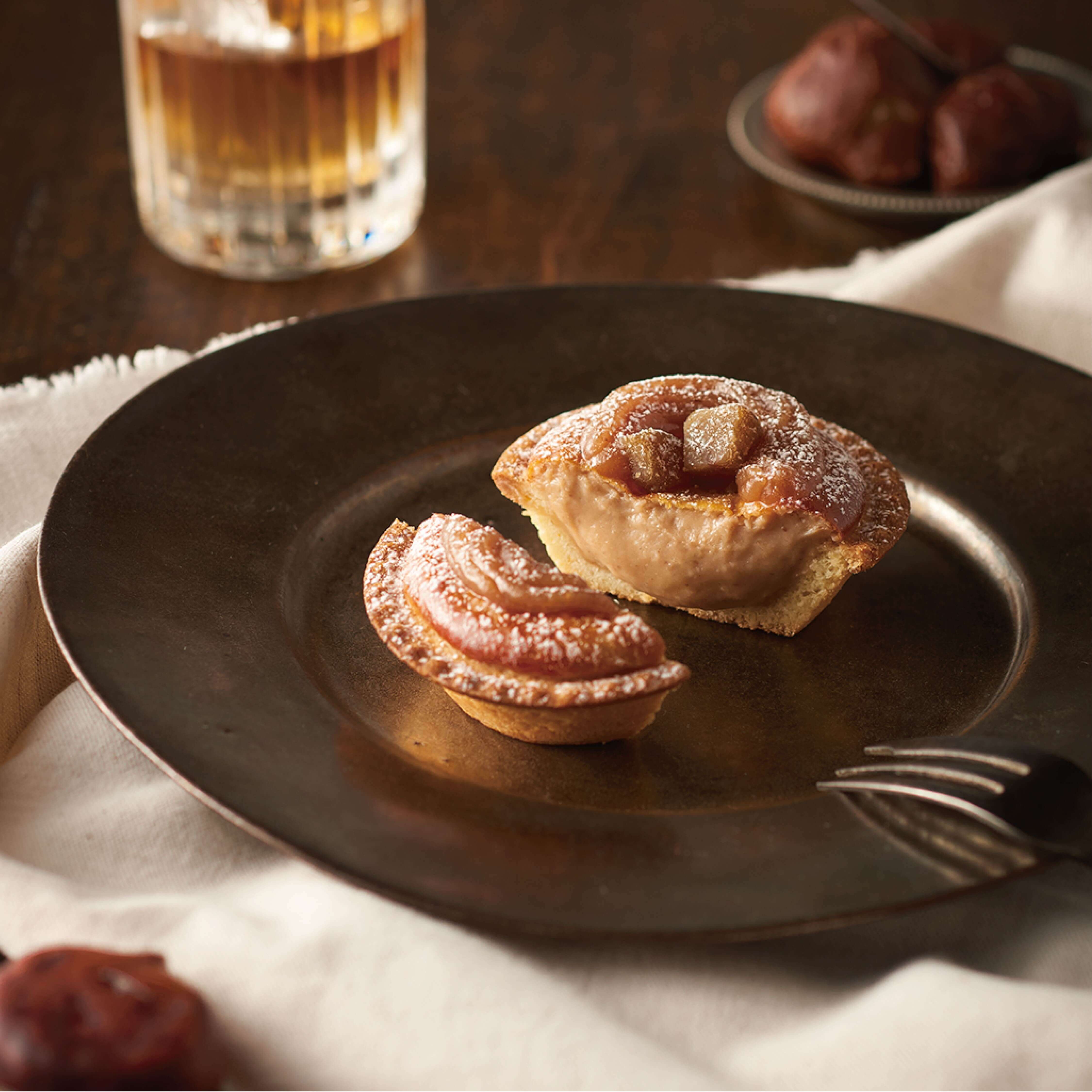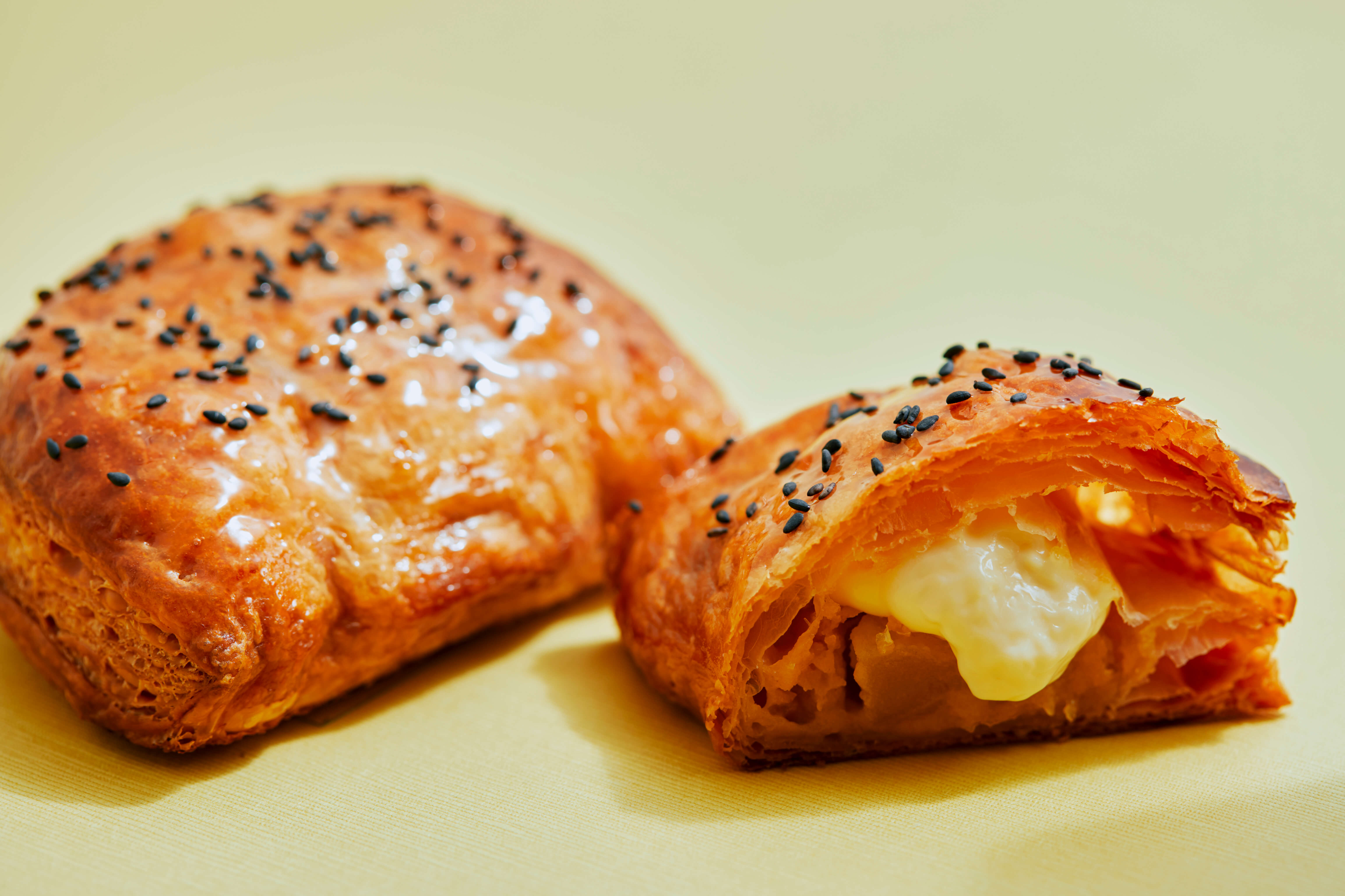 長崎県五島市産安納芋ペーストとりんごプレザーブ(果実の形をそのまま残すように煮たりんご)をフィリングに使用した安納芋のねっとり濃厚な甘さりんごのフレッシュな酸味が引き立つお芋フレーバーのアップルパ味わいに厚みをもたせるためバニラエキスと蜂蜜を加え、秋にぴったりな濃厚な味に仕上げました。トッピングには黒ゴマを載せ、香ばしい風味が楽しめます。