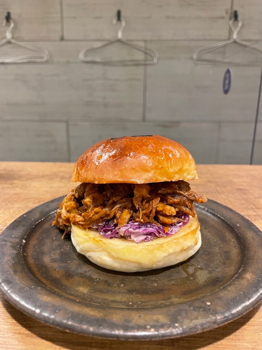 豚肩ロースにオリジナルブレンドのミックススパイスであるドライラブにつけこんだPULLED PORK BURGER。YES!BURGER自家製の燻製マヨネーズで紫キャベツを和えて挟み、上から自家製のバーベキューソースをかけてお召し上がり頂きます。お店では食べられないフードトラック限定メニューです!ぜひご賞味ください!