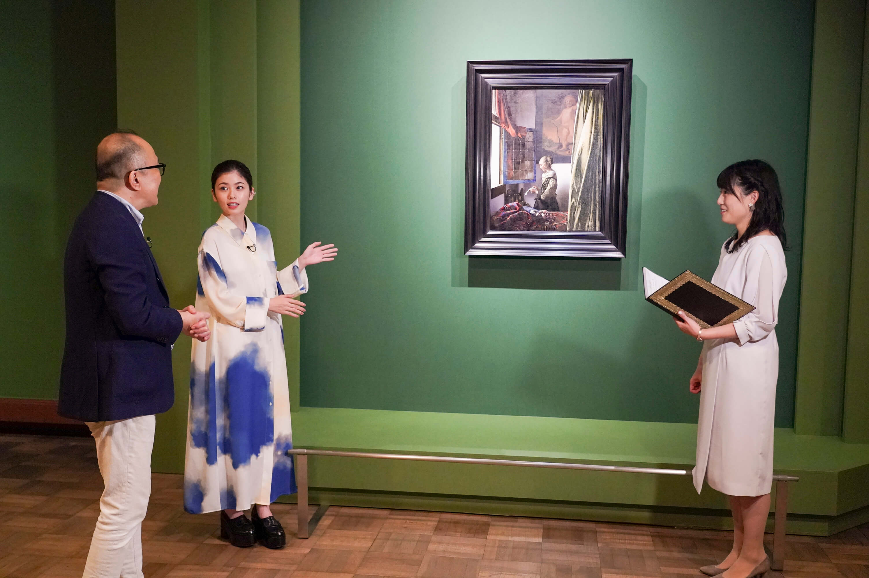 この展覧会の目玉となる作品は、修復後世界初巡回となるフェルメールの《窓辺で手紙を読む女》。この絵の壁面の画中画がフェルメールの死後、何者かに塗りつぶされていたことが近年の研究で判明し、フェルメールが仕上げた状態に戻すプロジェクトが4年にわたって行われたのです。美術界における世界的“事件”に、音声ガイドとして関わったのが女優の小芝風花。特番では、美術評論家の山田五郎と一緒に大阪市立美術館の展示室をめぐり、アートの世界に思い切り浸りました。